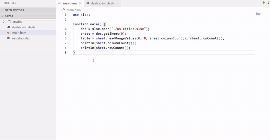 - Import and read Excel files (.xlsx) directly in your hxm programs.