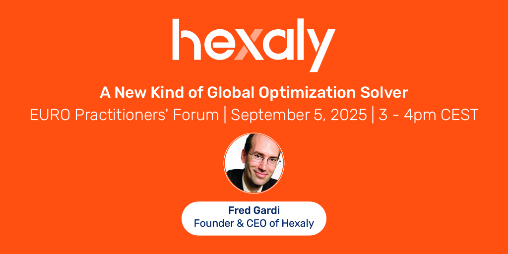 Don’t miss the session on Friday, September 5, 3:00-4:00 pm Central European Time (CET): Fred Gardi, Founder & CEO of Hexaly, will explain what Hexaly is in comparison with traditional Mixed-Integer Linear Programming (MILP) and Constraint Programming (CP) solvers, and the difference it makes when solving problems like Routing, Scheduling, Packing, Clustering, Assignment, Matching, Location, and many others in Supply Chain and Workforce Optimization. Below is the abstract of Fred’s talk at the EURO Practitioners’ Forum Webinar:
